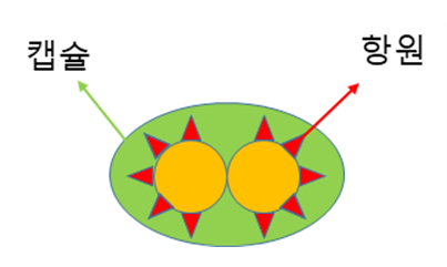 S형 균 (Smooth, 매끈 형): 겉이 매끈한 캡슐(피막)로 싸여 있습니다. 이 캡슐은 폐렴균의 항원을 가려주기 때문에 쥐의 면역계 공격을 막아내 살아남아서 쥐를 폐렴으로 죽게 만듭니다(따라서 독성 있음).