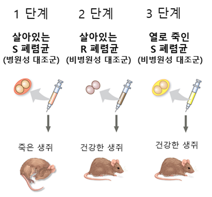그리피스는 쥐를 대상으로 차근차근 실험을 진행합니다. 여기까지는 누구나 예상 가능한 결과였습니다.