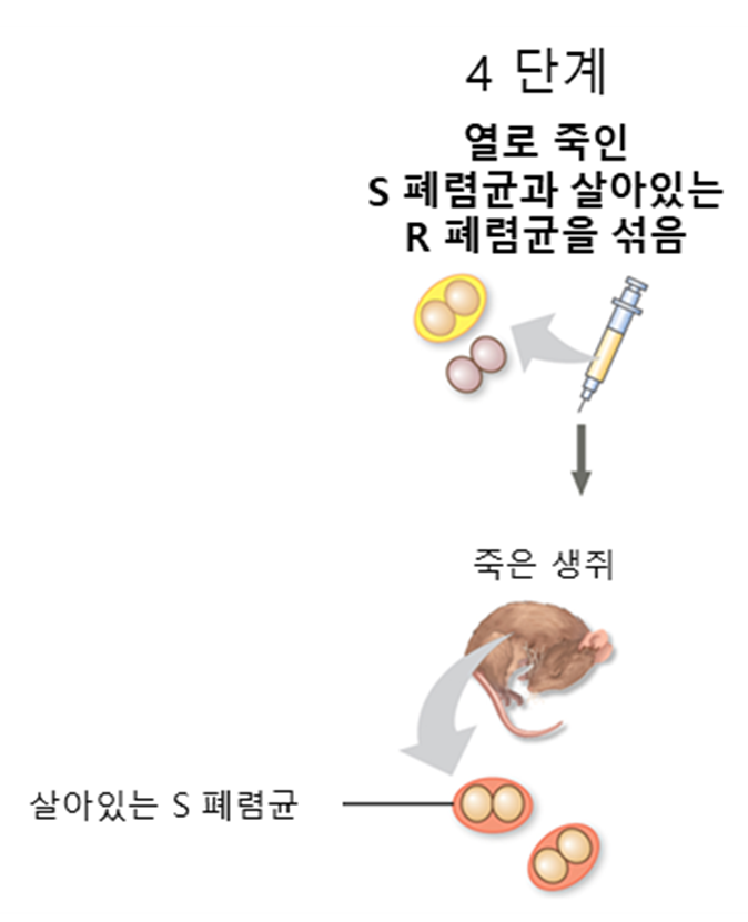 3단계: 열을 가해 죽인 S형을 주사하면 쥐가 살음 🐭