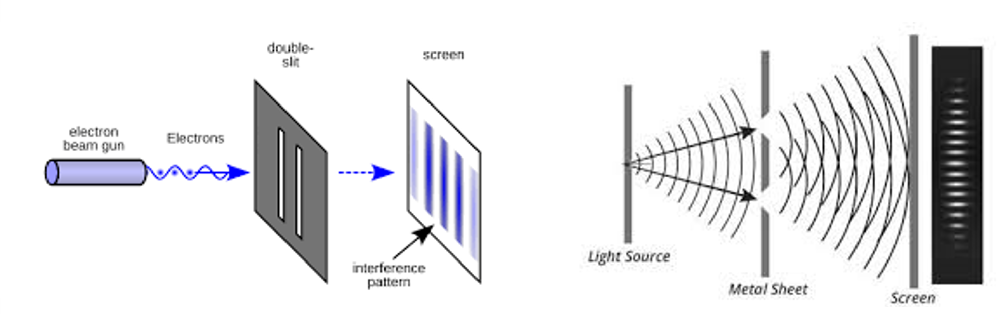 ▲ (왼쪽) 전자가 만드는 간섭무늬가 (오른쪽) 빛이 만드는 간섭무늬와 같은 동일한 패턴임을 확인.