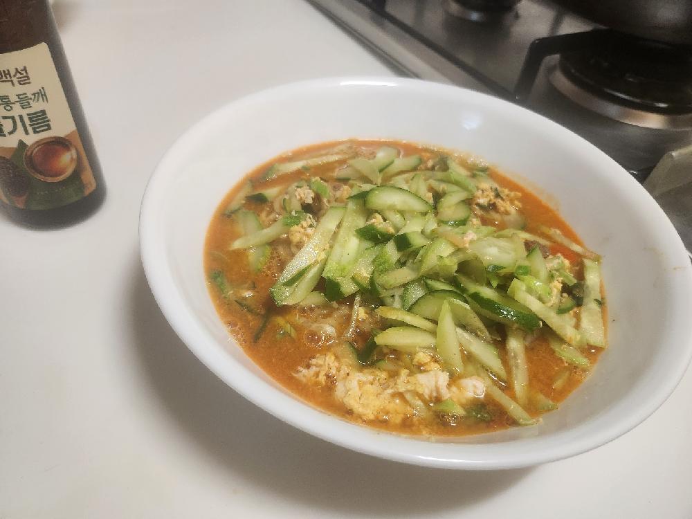 신라면+오이1개+계란1개+들기름1큰술