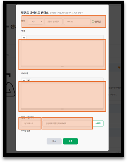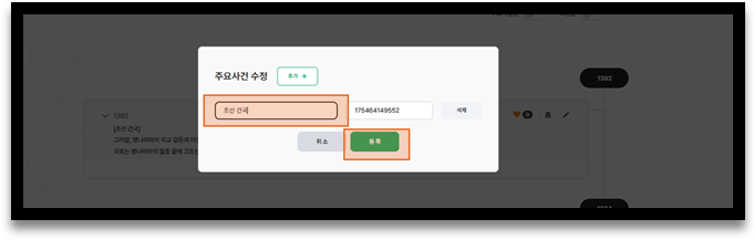 ④ 왼쪽 ‘주요사건 텍스트’ 항목에 제목을 입력하고 하단 ‘등록’을 눌러 완성합니다.