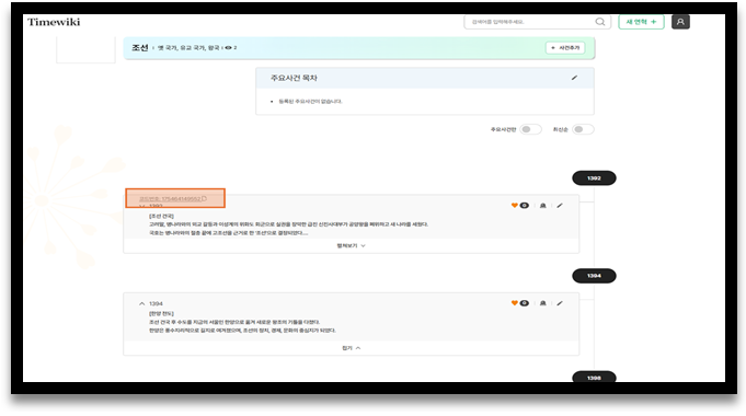1-3-1-2. ‘주요사건만’을 Off 할 경우, 연혁에 포함된 모든 사건이 화면에 나타납니다.