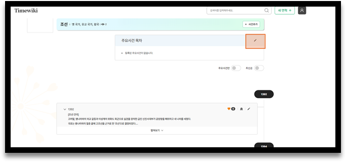 ② 주요사건 목차 수정 버튼을 눌러 수정창을 엽니다.