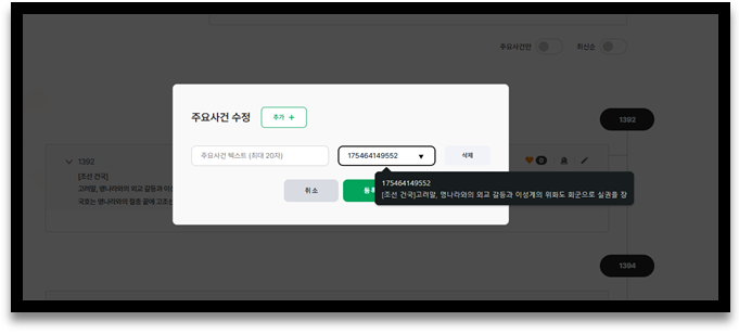 상단에 표현되는 헤더 우측 ‘+사건추가’ 버튼을 통해 편리하게 사건을 추가할 수 있습니다.